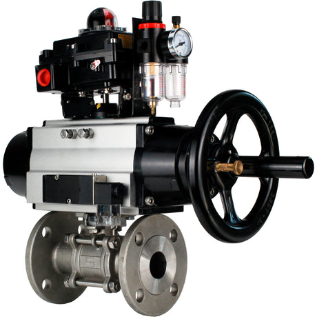 Ball valves Elephant BV3232P(3pc)-FP-F-ISO-H DN65-100 25/40 bar flanged with ISO flange, body - 316 stainless steel, full bore, seal - PTFE, with pneumatic drive PA-DA-105-1, LSU APL-410N Ex