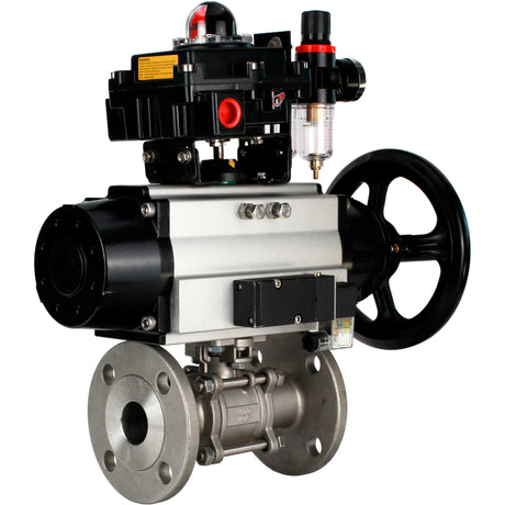 Ball valves Elephant BV3232P(3pc)-FP-F-ISO-H DN65-100 25/40 bar flanged with ISO flange, body - 316 stainless steel, full bore, seal - PTFE, with pneumatic drive PA-DA pneumatic distributor 4V320-10 220V, LSU APL-410N Ex