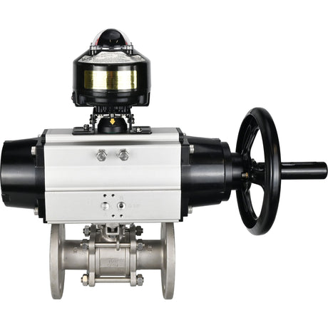 Ball valves Elephant BV3232P(3pc)-FP-F-ISO-H DN65-100 25/40 bar flanged with ISO flange, body - 316 stainless steel, full bore, seal - PTFE, with pneumatic drive PA-DA pneumatic distributor 4V320-10 220V, manual backup MON3-700-T38-ISO