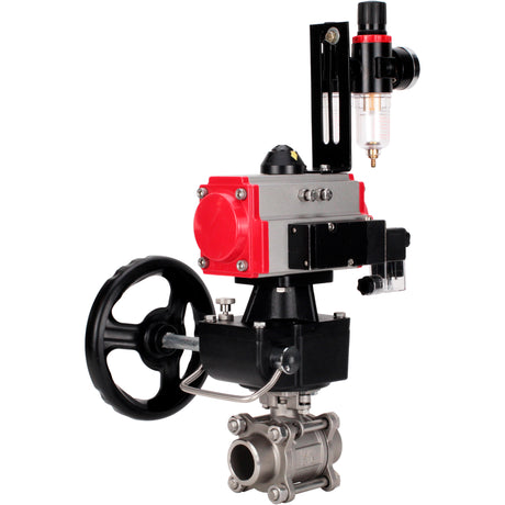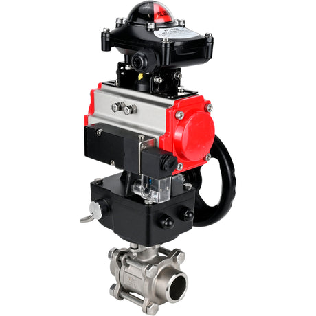 Ball valves Elephant BV3232P(3pc)-FP-W-ISO-H WDVF DN15-32 63 bar full bore, 316 stainless steel, seal - PTFE, for welding, with PA-DA pneumatic actuator, pneumatic distributor 4V320-08 220V, LSU APL-510N EX, manual backup for MON