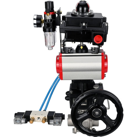 Ball valves Elephant BV3232P(3pc)-FP-W-ISO-H WDVF DN15-32 63 bar full bore, 316 stainless steel, seal - PTFE, for welding, with PA-DA pneumatic actuator, pneumatic distributor 4M310-08 220V, LSU APL-210N, manual backup for MON