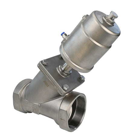 Pneumatic valve Elephant VS324PV-F-1PNC, body material - stainless steel CF8M, flanged, Y-shaped