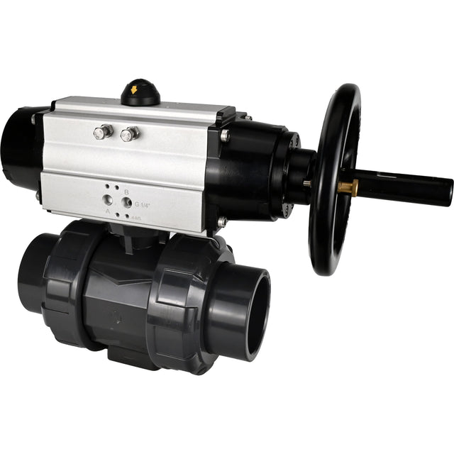 Ball valves Elephant BV4242E-FP-GRM-ISO, body material - UPVC, ball material - UPVC, seal - EPDM, with pneumatic actuator double action PA-DA-105-1