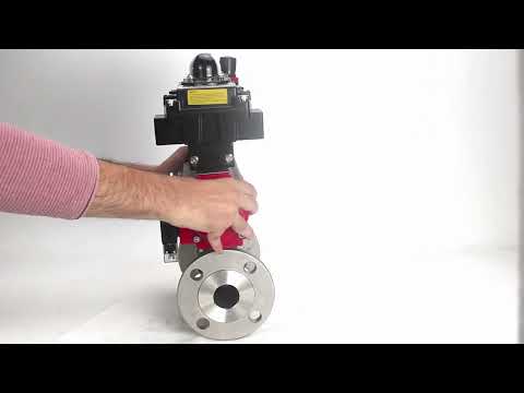 Sketch of pneumatic actuator materials Ball valves Elephant BV3131P(3pc)-FP-F-H DN15-100 Ru40, three-piece full bore flanged, stainless steel SS304, PTFE, with pneumatic actuator PA-SA with return springs, with pneumatic valve 4M310-08 220V, with BCV APL-410N EX, with ATU AFC2000.