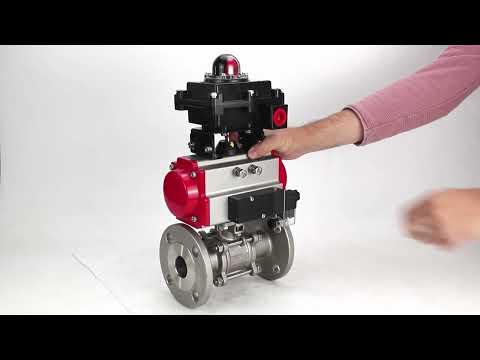 Materials of pneumatic actuator parts Pneumatic ball valves Elephant BV3131P(3pc)-FP-F-H DN15-100 Ru40, three-piece full bore flanged, stainless steel SS304, sealing - PTFE, with pneumatic actuator PA-SA with return springs, with pneumatic valve 4M310-08 24V, with BCV APL-410N EX
