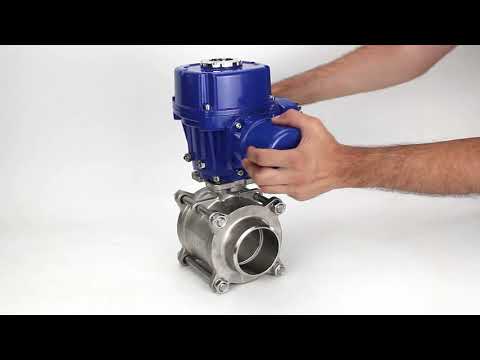 Stainless steel ball valve Elephant BVPP 316,200-ISO 63 bar SS316 full port, for welding, body material - stainless steel, quarter-turn electric actuator Elephant QT-W (M) 380 V