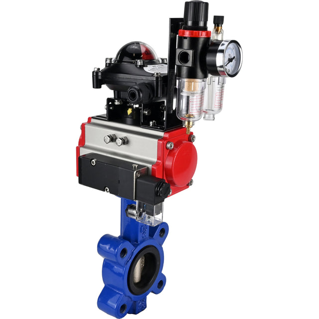 Butterfly valves WBV1616N-2W-Fb-H, body material - cast iron QT450, disk material - cast iron QT450, seal - NBR, pneumatic actuator PA-DA double action, 4M310-08 24V, LSU APL-210N, ATU AFC2000