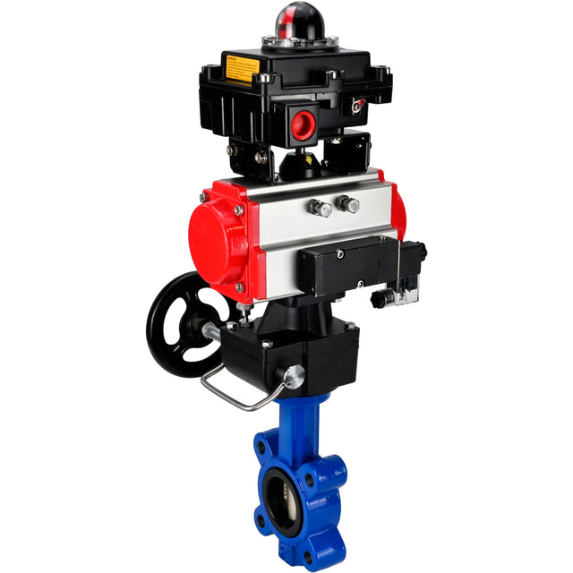 Butterfly valves WBV1616N-2W-Fb-H, body material - cast iron QT450, disk material - cast iron QT450, seal - NBR, pneumatic actuator PA-DA double action, 4M310-08 24V, LSU APL-410N EX, handwheel MON