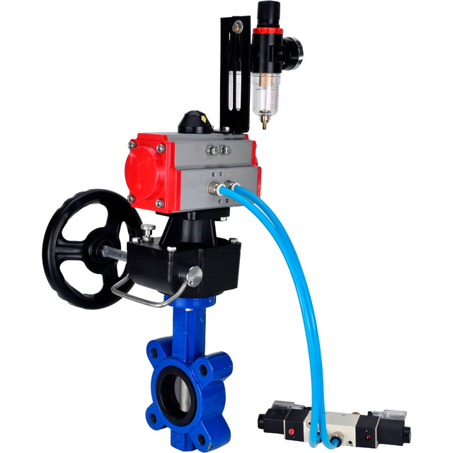 Butterfly valves WBV1631N-2W-Fb-H, body material - cast iron QT450, disk material - Stainless steel AISI 304, seal - NBR, pneumatic actuator PA-DA double action, 4V320-10 220V handwheel MON, ATU AFC2000