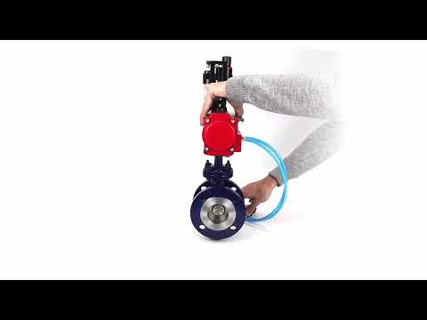 Water Butterfly Valve Elephant WBV3EX-3431M-1W-F-ISO, body material - Carbon steel, disk material - Stainless steel AISI 304, seal - Metal, pneumatic actuator PA-DA double action, 4V320-08 220V, ATU AFC2000