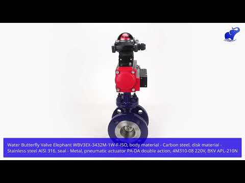 Water Butterfly Valve Elephant WBV3EX-3432M-1W-F-ISO, body material - Carbon steel, disk material - Stainless steel AISI 316, seal - Metal, pneumatic actuator PA-DA double action, 4M310-08 220V, LSU APL-210N