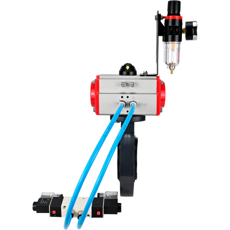 Butterfly valves Elephant WBV4242E-2W-Fb-ISO, body material - UPVC, disc material - UPVC, seal - EPDM, with pneumatic actuator with return springs PA-SA, pneumatic distributor 4V320-10 220V and ATU AFC2000