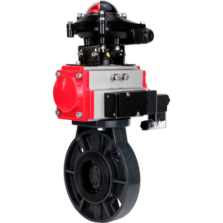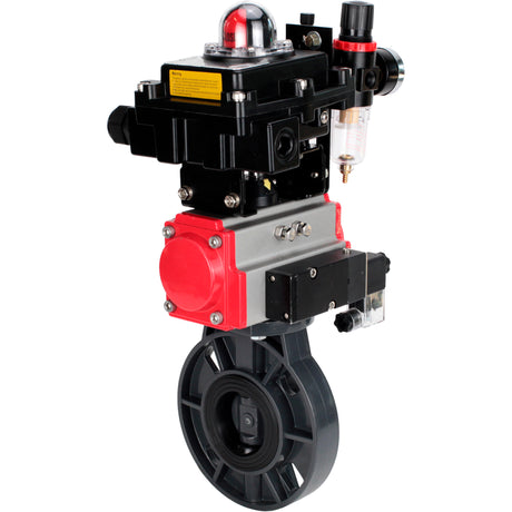 Butterfly valves Elephant WBV4242E-2W-Fb-ISO, body material - UPVC, disc material - UPVC, seal - EPDM, with pneumatic actuator double action PA-DA and LSU APL-210N