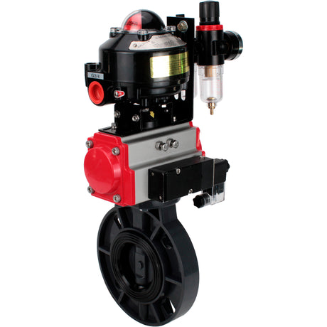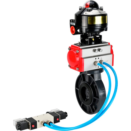 Butterfly valves Elephant WBV4242E-2W-Fb-ISO, body material - UPVC, disc material - UPVC, seal - EPDM, with pneumatic actuator with return springs PA-SA, pneumatic distributor 4M310-08 24V, LSU APL-510N EX and ATU AFC2000