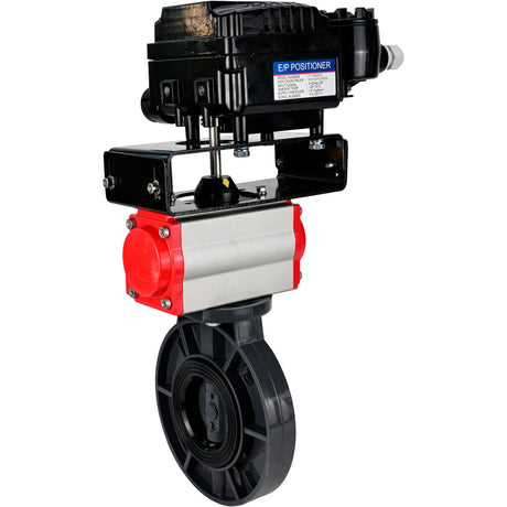 Butterfly valves Elephant WBV4242E-2W-Fb-ISO, body material - UPVC, disc material - UPVC, seal - EPDM, with pneumatic actuator double action PA-DA and electro-pneumatic rotary positioner YT-1000RSN with feedback