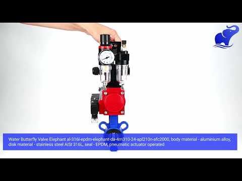 Water Butterfly Valve Elephant al-316l-epdm-elephant-da-4m310-24-apl210n-afc2000, body material - aluminium alloy, disk material - stainless steel AISI 316L, seal - EPDM, pneumatic actuator operated