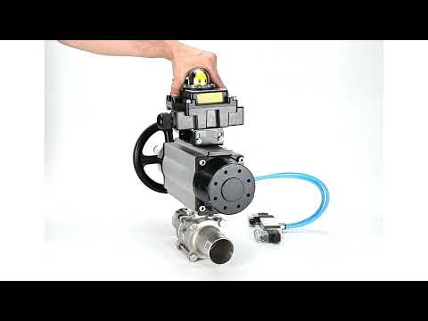 Ball valves Elephant BV3131P(3pc)-FP-W-ISO-H LONG, body material - Stainless steel AISI 304, seal - PTFE / PTFE / Teflon, with pneumatic actuator double action PA-DA-105-1, 4V320-08 220V, LSU APL-410N Ex, ATU AFC2000