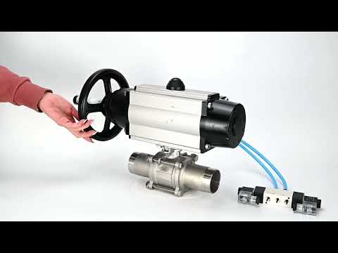 Ball valves Elephant BV3131P(3pc)-FP-W-ISO-H LONG, body material - Stainless steel AISI 304, seal - PTFE / PTFE / Teflon, with pneumatic actuator double action PA-DA-105-1, 4V320-10 220V