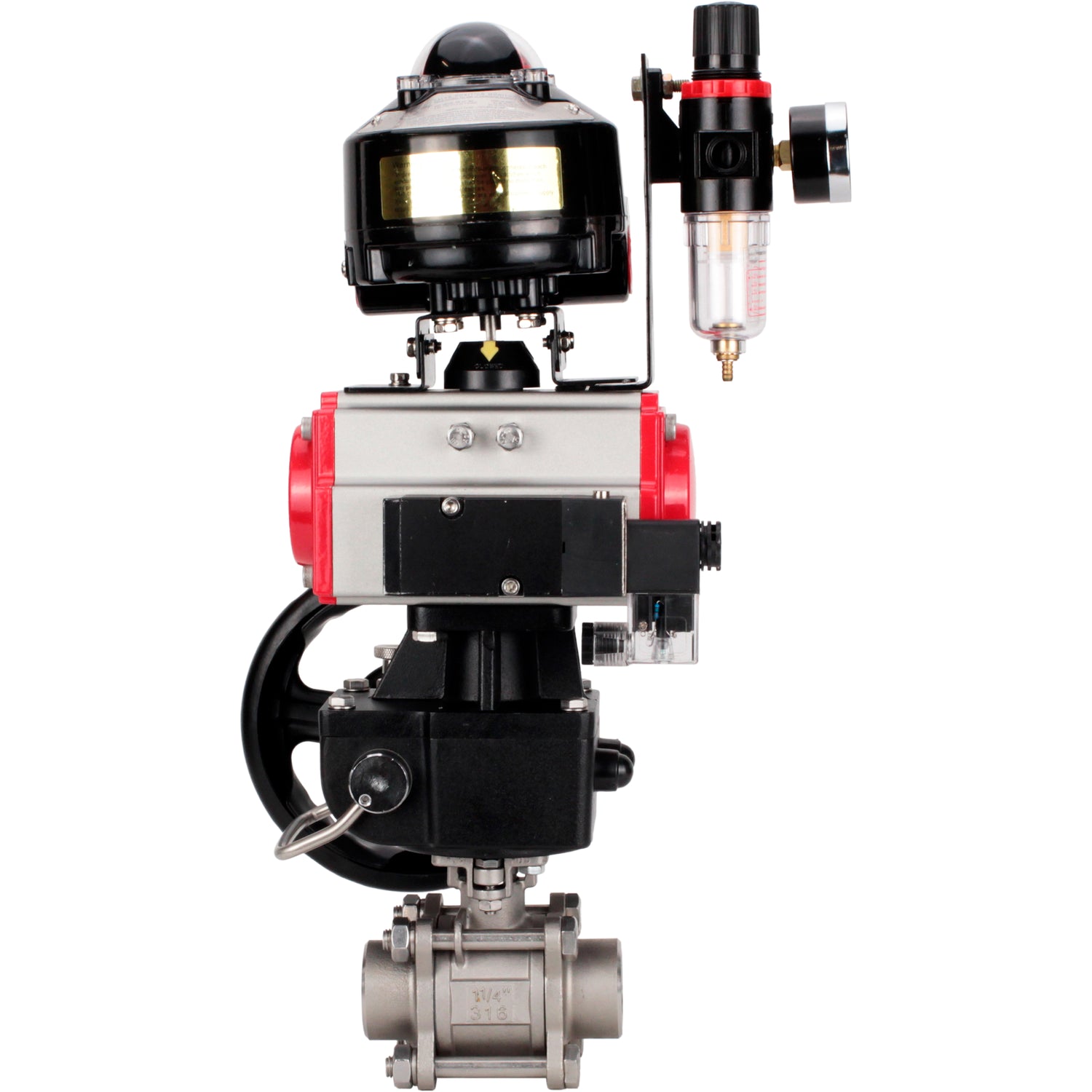 Ball valves Elephant BV3232P(3pc)-FP-W-ISO-H WDVF DN15-32 63 bar full bore, 316 stainless steel, PTFE, for welding, with PA-DA pneumatic actuator, pneumatic distributor 4M310-08 220V, LSU APL-510N EX, manual backup for MON, ATU AFC2000