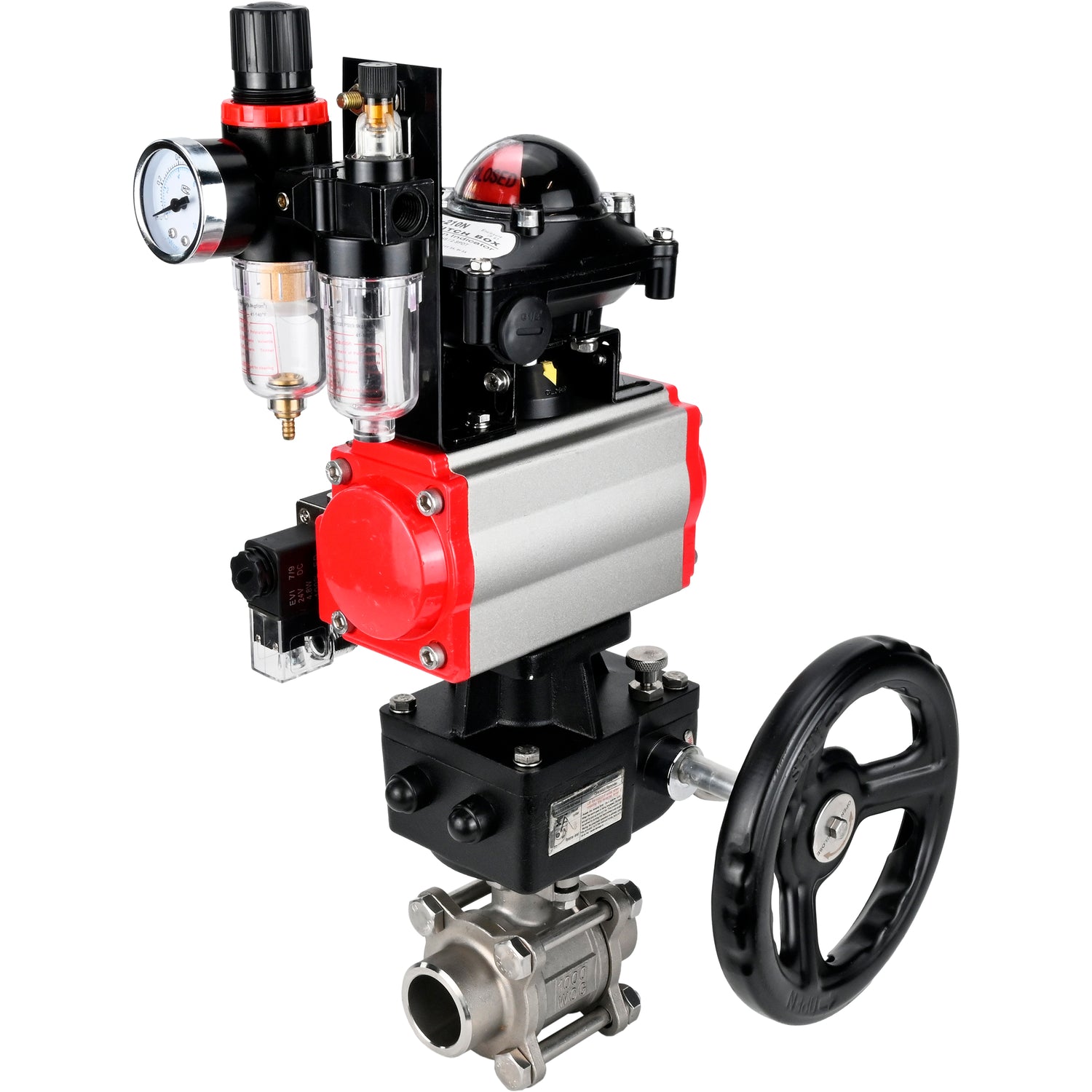 Ball valves Elephant BV3232P(3pc)-FP-W-ISO-H WDVF DN15-32 63 bar full bore, 316 stainless steel, seal - PTFE, for welding, with PA-DA pneumatic actuator, pneumatic distributor 4M310-08 220V, LSU APL-210N, manual backup for MON, ATU AFC2000