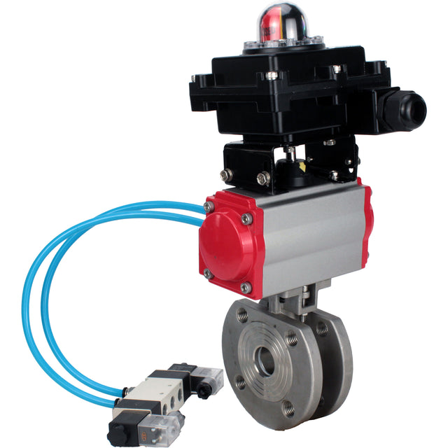 Elephant BV3232P-FP-Fb-ISO-H 16 bar ball valves, full bore, flanged, SS316 stainless steel, sealing - PTFE, with double-acting pneumatic actuator PA-DA, with pneumatic valve 4V320-08 220V, with LSU APL-410N EX
