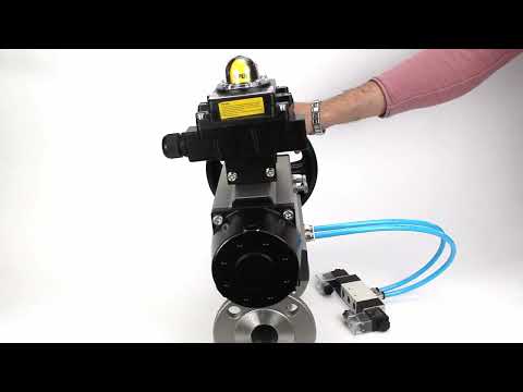 Краны шаровые DN.ru BV3232P(3pc)-FP-F-ISO-H Ду65-100 Ру16-25, трехсоставные полнопроходные фланцевые, нержавеющая сталь SS304, уплотнение - PTFE, с пневмоприводом PA-DA-105-1 двойного действия, с пневмораспределителем 4V320-10 220В, с БКВ APL-410N EX