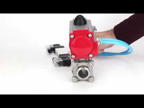 Ball valves Elephant BV3232P(3pc)-FP-W-ISO-H 16 bar/25, full bore for welding, stainless steel SS316, seal - PTFE, with double-acting PA-DA pneumatic actuator, with pneumatic distributor 4V320-10 220V