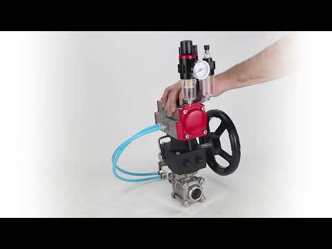 Ball valves Elephant BV3232P(3pc)-FP-W-ISO-H DN10-50 16 bar/40, full bore for welding, stainless steel SS316, seal - PTFE, with double-acting PA-DA pneumatic actuator, with pneumatic distributor 4V320-08 220V, with manual Doubler MON1-250-T26-ISO, with po