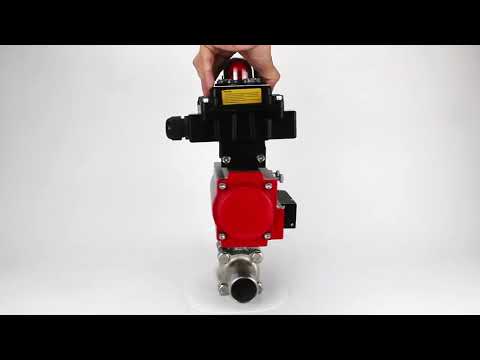 The limit switch unit is designed for visual and electrical signaling of the end positions of the shut-off element of the valve, tap or butterfly valve. It is installed on top of the surface of the pneumatic drive and connected to the DIN standard drive shaft. In a sealed box, as a rule, there are two sensors that monitor the position of the drive shaft and signal in extreme positions. OMRON microswitches, inductive sensors or reed switches are used as sensors. Visual indication of the position can be seen on the body of the unit there is a 3D visual indicator RED - CLOSED and GREEN - OPEN.