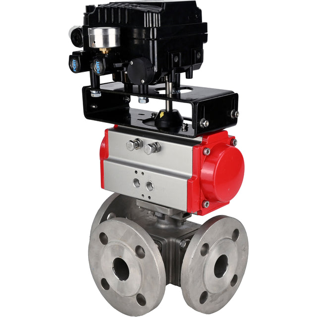 Ball valves Elephant BV3232P(4pc)-FP-3WL-F-ISO-H 16 bar full bore, flanged, body - stainless steel SS316, ISO flange F03/F04-F10/F12, square 9x9-19x19, with PA-SA pneumatic actuator with return springs and pneumatic positioner YT-1000RSN with reverse cont