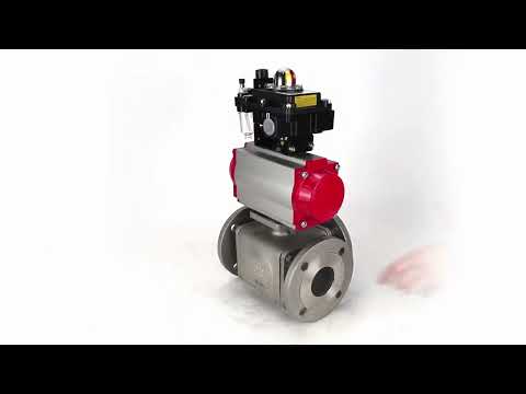 Ball valves Elephant BV3232P(4pc)-FP-3WL-F-ISO-H 16 bar full bore, flanged, body - stainless steel SS316, ISO flange F03/F04-F10/F12, square 9x9-19x19, with pneumatic drive PA-DA, pneumatic distributor 4M310-08 220V, LSU APL-410N EX and ATU AF