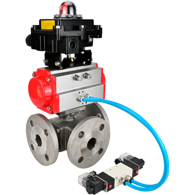 Ball valves Elephant BV3232P(4pc)-FP-3WL-F-ISO-H 16 bar full bore, flanged, body - stainless steel SS316, ISO flange F03/F04-F10/F12, square 9x9-19x19, with pneumatic drive PA-SA, pneumatic valve 4V320-10 220V and LSU APL-410N EX