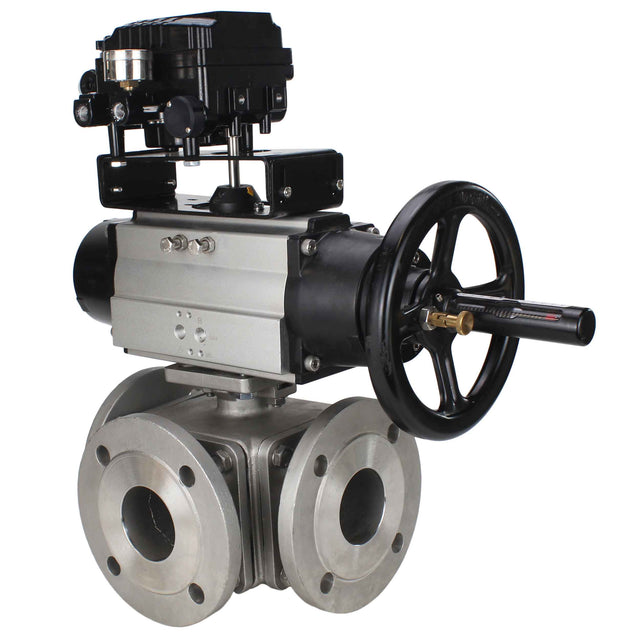 Ball valves Elephant BV3232P(4pc)-FP-3WL-F-ISO-H DN100 16 bar full bore, flanged, body - stainless steel SS316, ISO flange F10/F12, square 19x19, with double pneumatic actuator PA-DA-105-1 action and pneumatic positioner YT-1000RSN without feedback - DN100 / 16 bar is backordered and will ship as soon as it is back in stock.