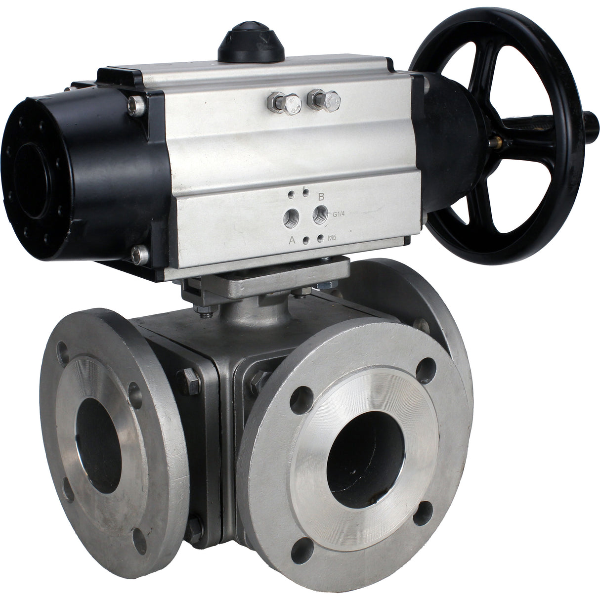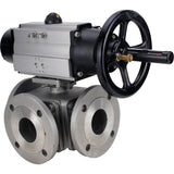 Ball valves Elephant BV3232P(4pc)-FP-3WL-F-ISO-H DN100 16 bar full bore, flanged, body - stainless steel SS316, ISO flange F10/F12, square 19x19, with double pneumatic actuator PA-DA-105-1 actions