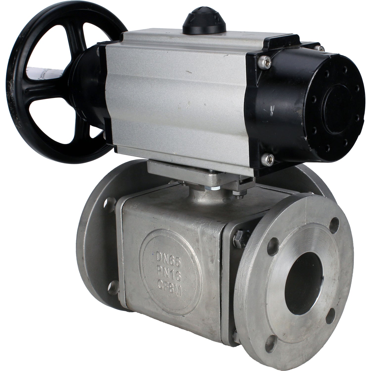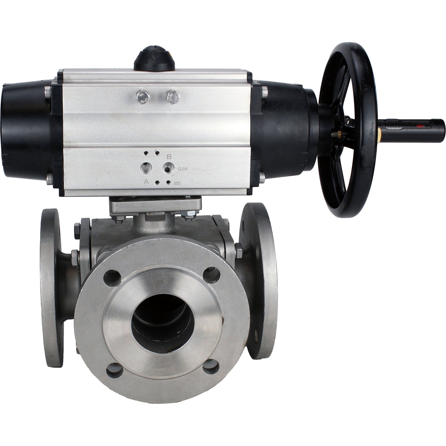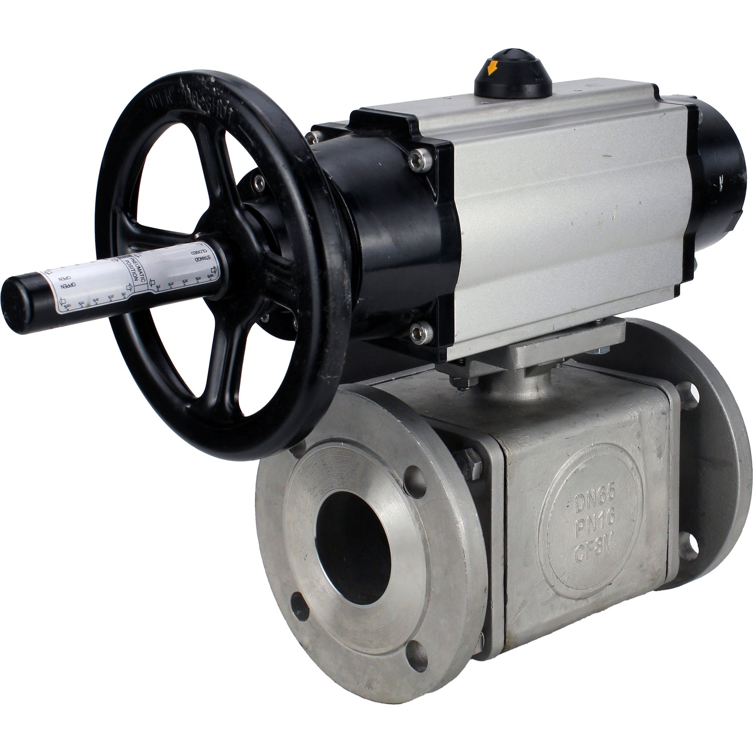 Ball valves Elephant BV3232P(4pc)-FP-3WL-F-ISO-H DN100 16 bar full bore, flanged, body - stainless steel SS316, ISO flange F10/F12, square 19x19, with double pneumatic actuator PA-DA-105-1 actions