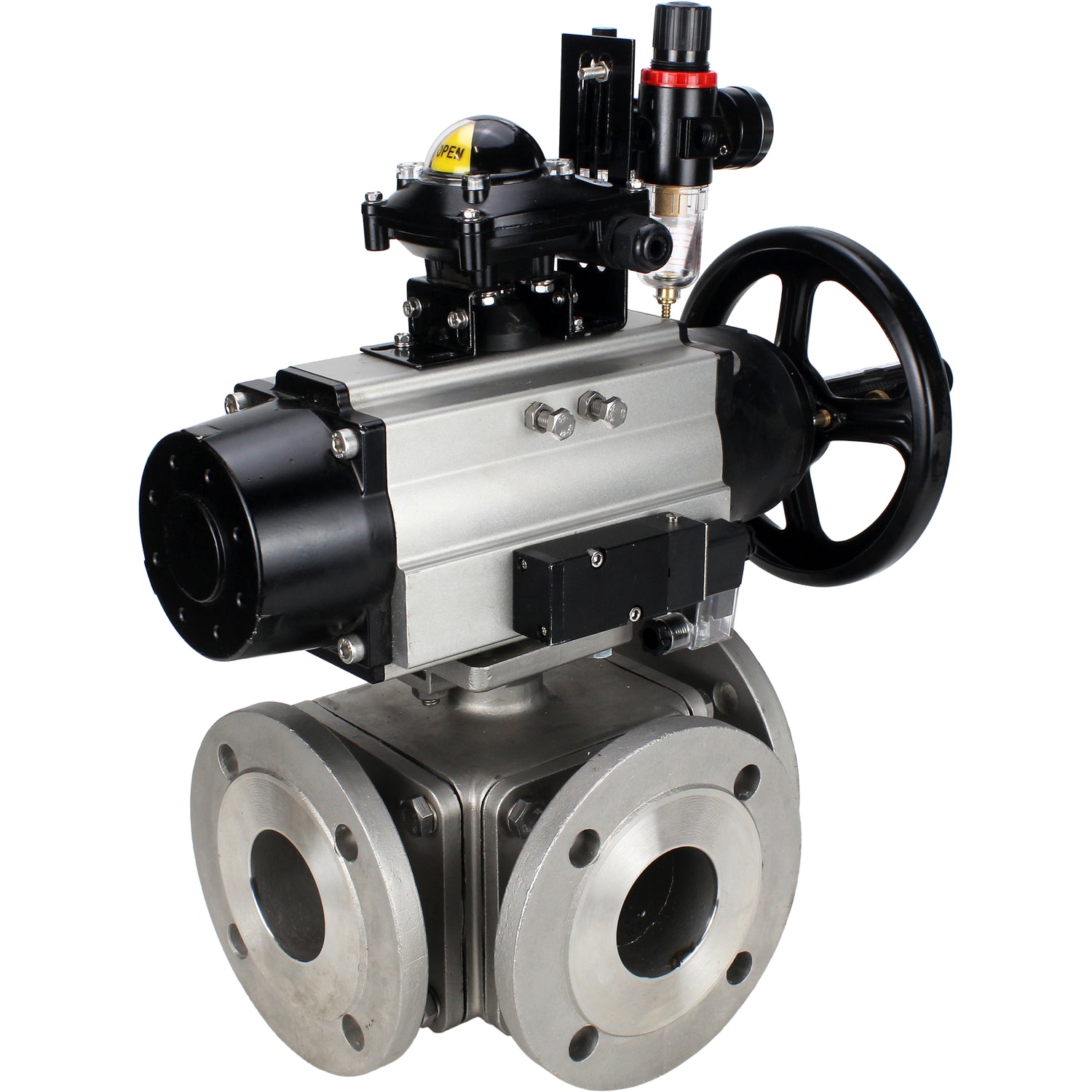 Ball valves Elephant BV3232P(4pc)-FP-3WL-F-ISO-H DN100 16 bar full bore, flanged, body - stainless steel SS316, ISO flange F10/F12, square 19x19, with pneumatic actuator PA-DA-105-1, pneumatic distributor 4M310-08 NAMUR 24V, LSU APL-210N and ATU AFC2000