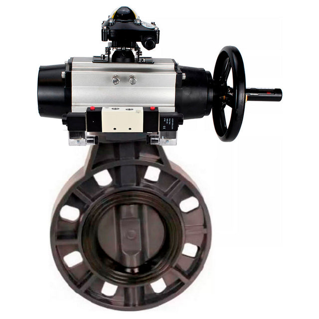 Butterfly valves Elephant WBV4242E-2W-Fb-ISO, body material - UPVC, disc material - UPVC, seal - EPDM, with pneumatic actuator double action PA-DA-105-1, pneumatic distributor 4V320-08 220V and LSU APL-210N EX