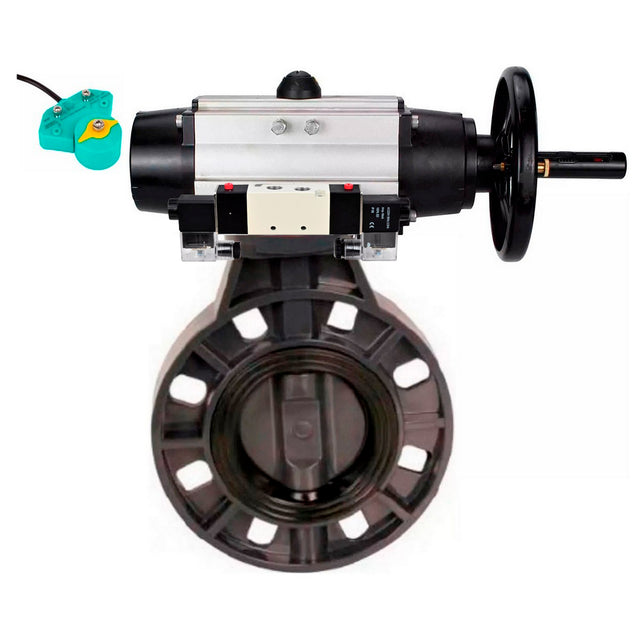 Butterfly valves Elephant WBV4242E-2W-Fb-ISO, body material - UPVC, disc material - UPVC, seal - EPDM, with pneumatic actuator double action PA-DA-105-1, pneumatic distributor 4V320-08 220V and magnetic switch ALS200D