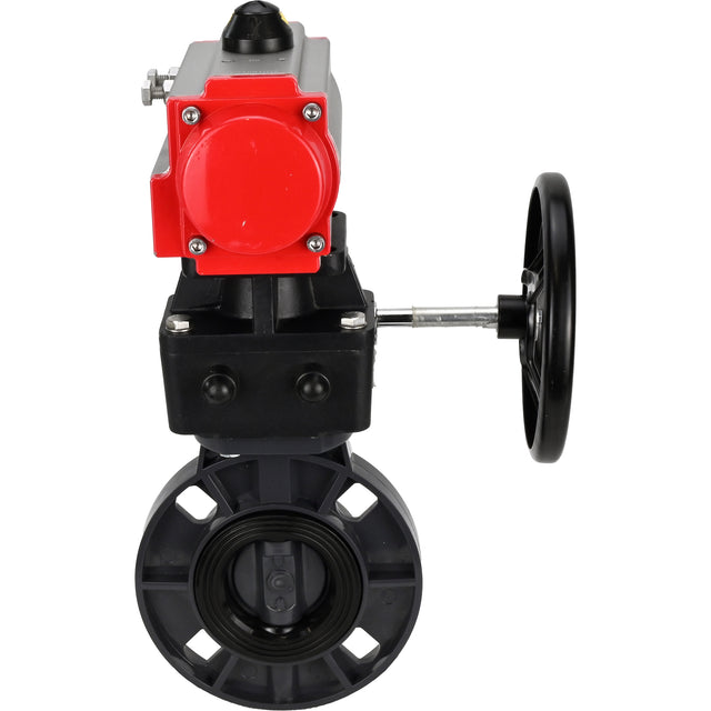 Butterfly valves Elephant WBV4242E-2W-Fb-ISO, body material - UPVC, disc material - UPVC, seal - EPDM, with pneumatic actuator double action PA-DA and handwheel MON