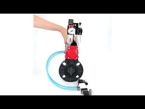 Butterfly valves Elephant WBV4242E-2W-Fb-ISO, body material - UPVC, disc material - UPVC, seal - EPDM, with pneumatic actuator double action PA-DA, pneumatic distributor 4V320-08 220V and ATU AFC2000