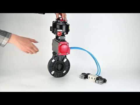Butterfly valves Elephant WBV4242E-2W-Fb-ISO, body material - UPVC, disc material - UPVC, seal - EPDM, with pneumatic actuator double action PA-DA, pneumatic distributor 4V320-08 220V and LSU APL-510N EX