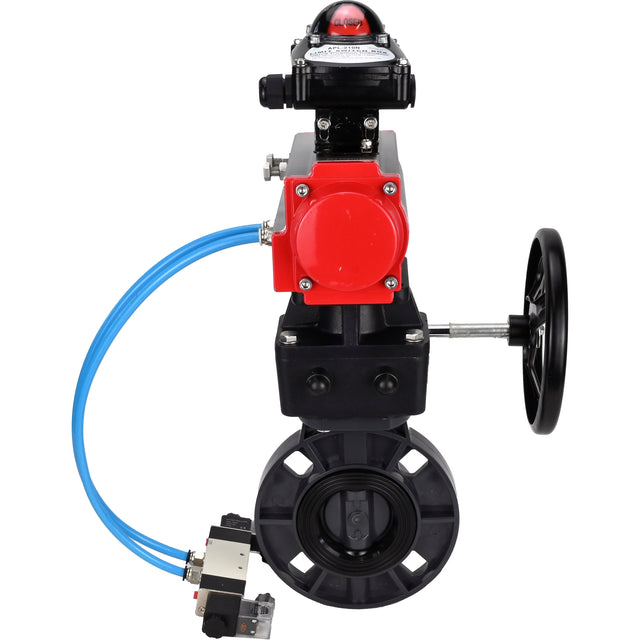 Butterfly valves Elephant WBV4242E-2W-Fb-ISO, body material - UPVC, disc material - UPVC, seal - EPDM, with pneumatic actuator double action PA-DA, pneumatic distributor 4V320-08 220V, LSU APL-210N EX and handwheel MON