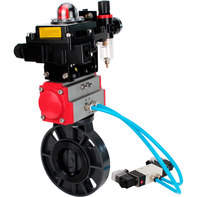 Butterfly valves Elephant WBV4242E-2W-Fb-ISO, body material - UPVC, disc material - UPVC, seal - EPDM, with pneumatic actuator double action PA-DA, pneumatic distributor 4V320-08 220V, LSU APL-410N EX and ATU AFC2000