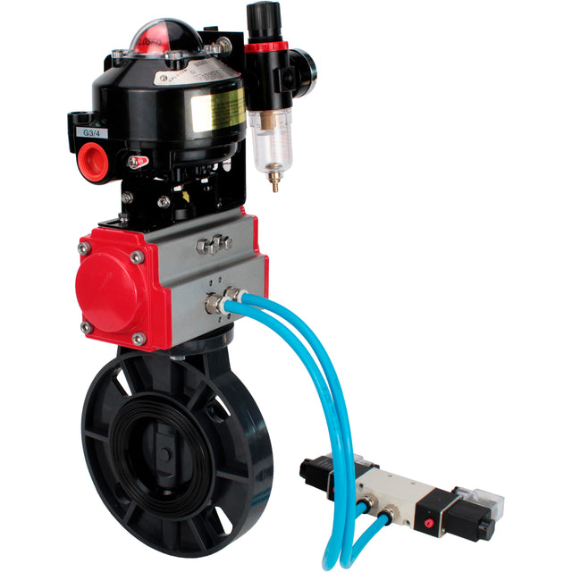 Butterfly valves Elephant WBV4242E-2W-Fb-ISO, body material - UPVC, disc material - UPVC, seal - EPDM, with pneumatic actuator double action PA-DA, pneumatic distributor 4V320-08 220V, LSU APL-510N EX and ATU AFC2000