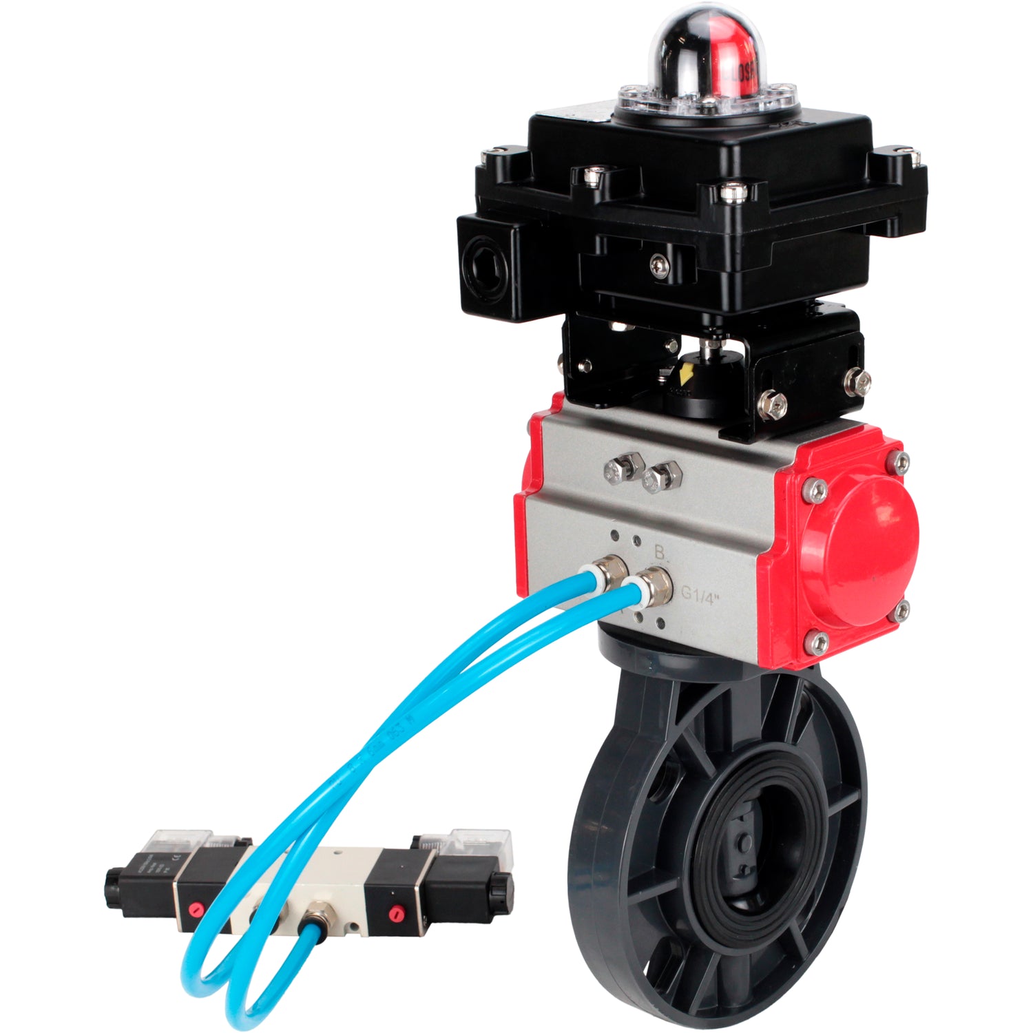 Butterfly valves Elephant WBV4242E-2W-Fb-ISO, body material - UPVC, disc material - UPVC, seal - EPDM, with pneumatic actuator double action PA-DA, pneumatic distributor 4V320-10 220V and LSU APL-410N EX