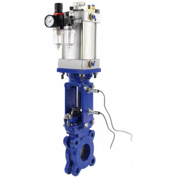 Knife gate valve Elephant GVKR1331E-1W-Fb-2P DN50-300 6/10/16 bar flanged joint, spindle - retractable, body - cast iron GGG40, seal - EPDM, with pneumatic drive, WENZ, 4V210-08 KUOIN 220V, induction sensors LJ12A3-4-J/EZ 220V and ATU AFC2