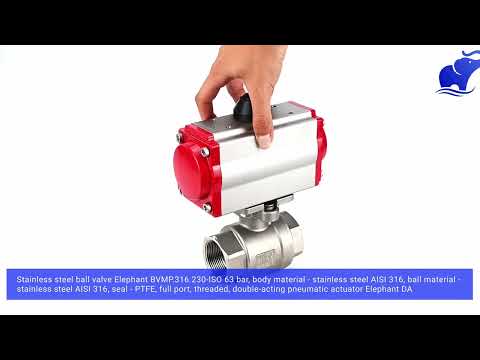 Stainless steel ball valve Elephant BVMP.316.230-ISO 63 bar, body material - stainless steel AISI 316, ball material - stainless steel AISI 316, seal - PTFE, full port, threaded, double-acting pneumatic actuator Elephant DA