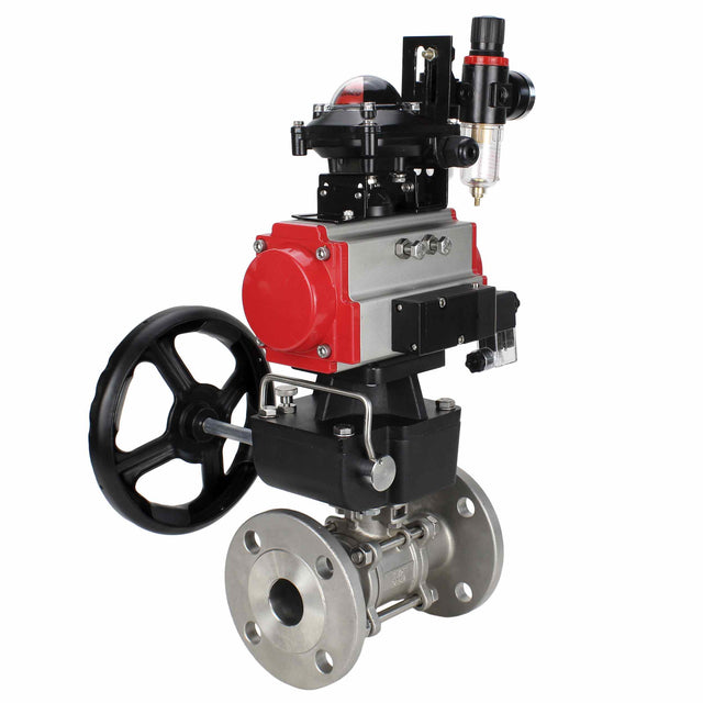 Stainless steel ball valve Elephant ksfpt-316-180-da-4m310-24v-apl210n-hdm-afc2000, body material - stainless steel AISI 316, ball material - stainless steel AISI 316, seal - PTFE, pneumatic actuator operated