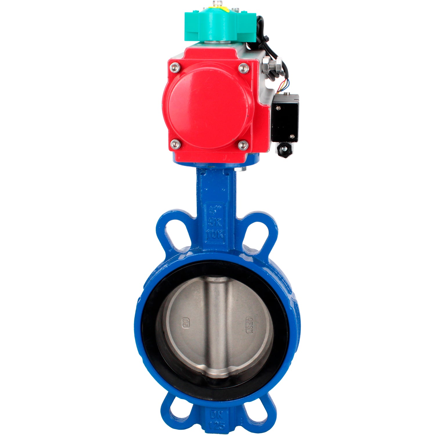Water Butterfly Valve Elephant WBV3432V-2W-Fb-H DN50-300 16 bar body - WCB carbon steel, disc - 316L stainless steel, seal - Viton, with pneumatic actuator PA-DA-XXX, pneumatic distributor 4M310-08 NAMUR 220V and ALS200D magnetic switch